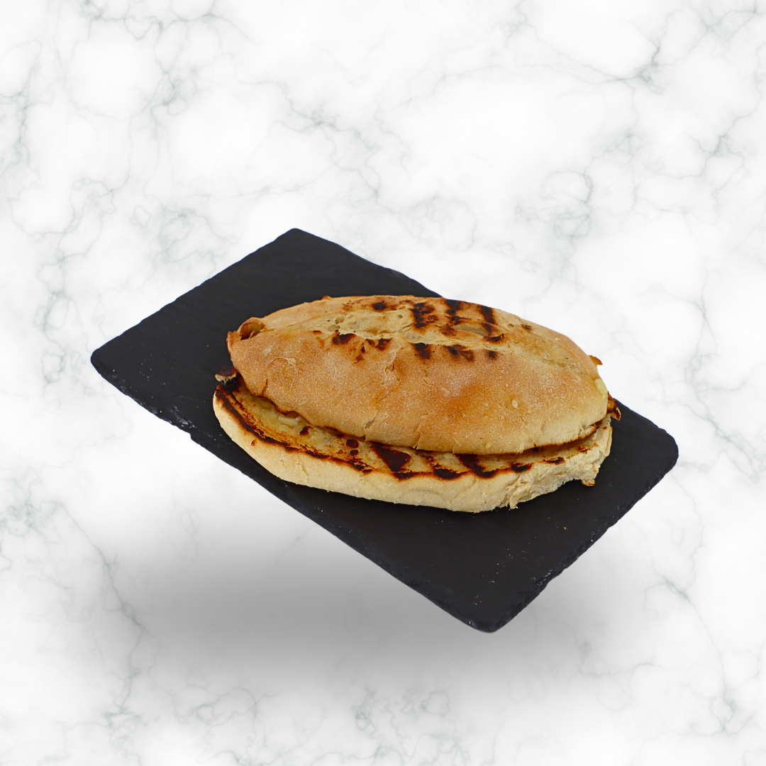 Pão rústico estaladiço, barrado com uma deliciosa manteiga de alho e ervas, levemente tostado na brasa para realçar o sabor e garantir uma textura crocante por fora e macia por dentro.