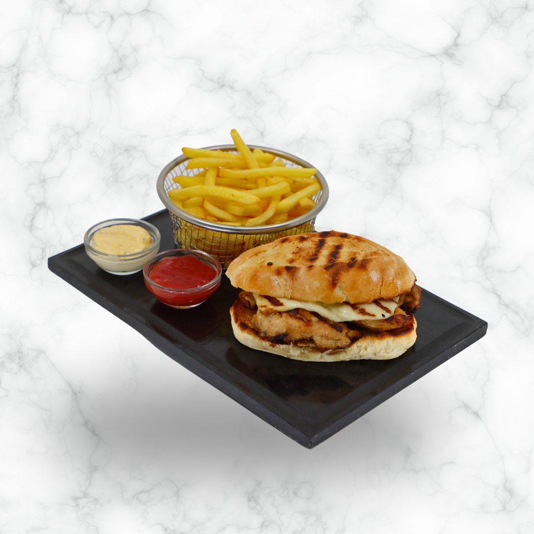 Inclui sandes artesanais , batatas fritas crocantes, dois molhos e refrigerante à escolha .