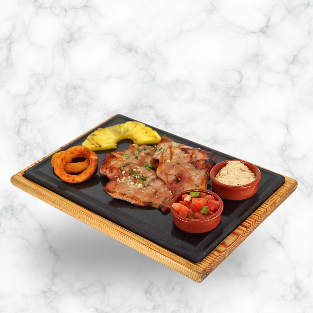 Personaliza o teu prato escolhendo 2 guarnições obrigatórias entre as opções disponíveis. Acompanha os saborosos Secretos de Porco, grelhados na perfeição para uma experiência única.